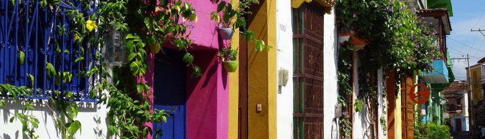 As we walked through Cartagena’s evening rush hour from the bus station to our hostel it seemed like any other noisy, busy Latin American city …. until we had our first glimpse of the imposing centuries-old, stone city walls. Tall and thick, with regular slots for the canyons, these walls protected what was once the main Spanish port on the Caribbean coast. During the 16th and 17th centuries the city was a storehouse for all the wealth plundered from all corners of the country and as such was a prime target for ruthless pirates roaming the Caribbean seas. Thirteen miles of these walls still remain, encircling the historical city centre, and are an imposing sight.